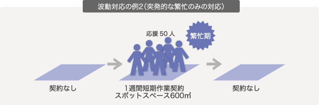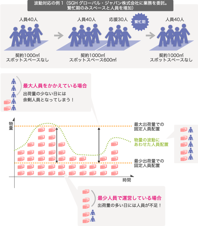 1社のみでスペース、人員を手配した場合、物量の最高値での手配が必要となります。