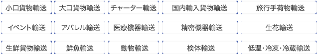 部品や各地の特産品である水産、農産、加工食品または花卉、旅行手荷物、血液検体等の