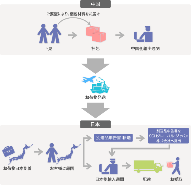 中国でのご滞在を終え、日本へご帰国される方へのサービスもご用意しております。