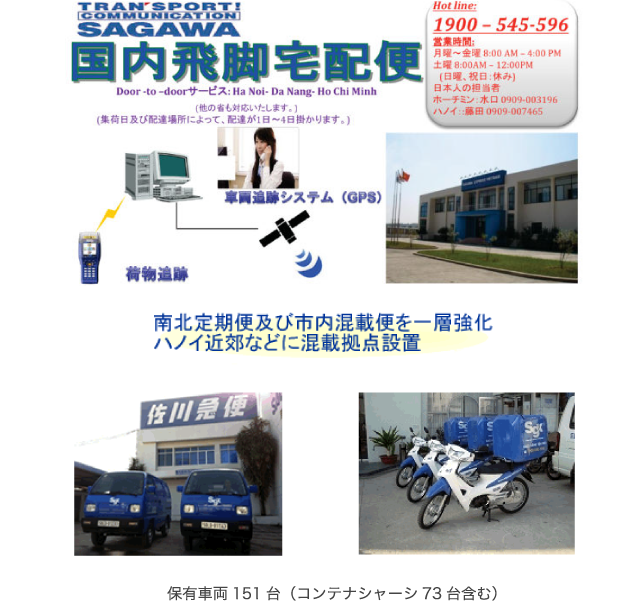 越南佐川急便从1997年开始开展了纵贯全越南的,以包租便为主体的卡车输送服务。
