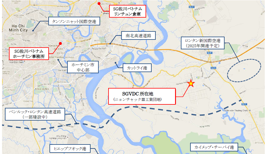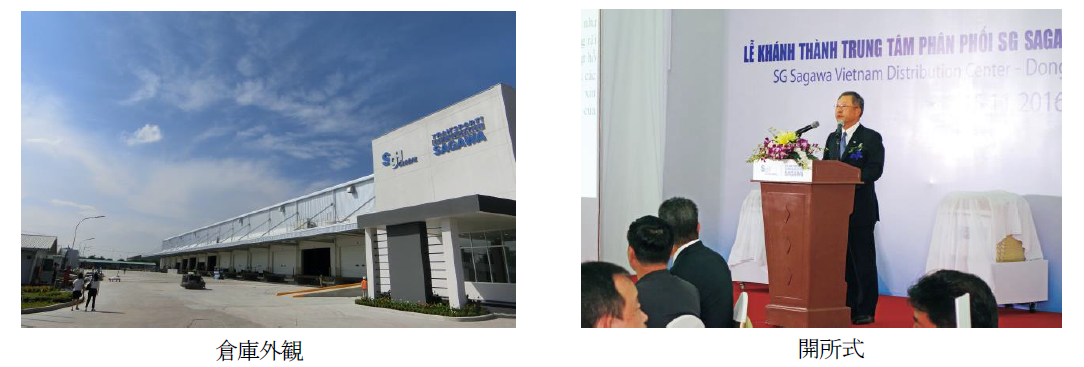 2016年11月1日SG HOLDINGS GLOBAL 海外事业统括公司:SG HOLDINGS GLOBAL PTE.LTD. (以下“SGHG”)的越南当地法人SG佐川越南(总公司:越南,胡志明市、商号:SG SAGAWA VIETNAMCO.,LTD.)在同奈省仁泽第三工业区建设的多租户物流设施“SGVDC”开始营业。