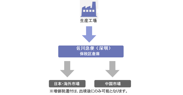 预先在保税区保管,实际销售时再进行出货,销售货物的税金由系统来实现。