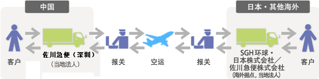 佐川急便国际物流(深圳)有限公司的航空货物运输服务,不仅对应客户中国国内航空运输的需要,同时也对应日本・海外的国际航空运输的需要。