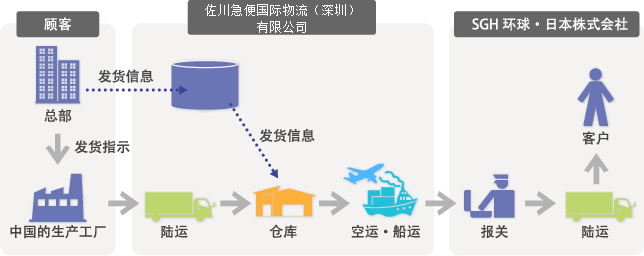 这是一个从顾客那里取得发货信息,在海外进行物流加工从而吸收在国内的高成本量的系统。